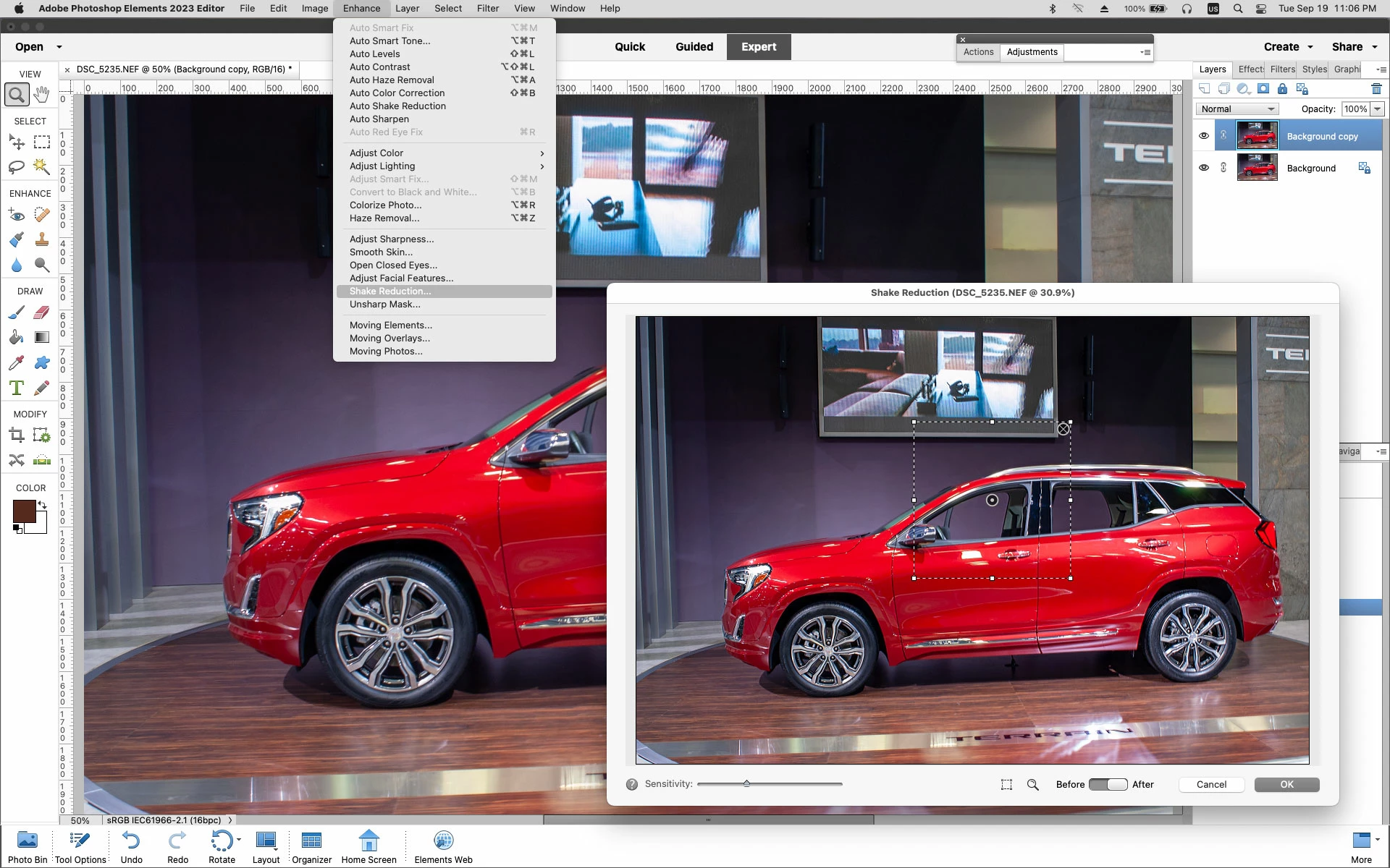 Missing Enhance menu items for Shake Reduction