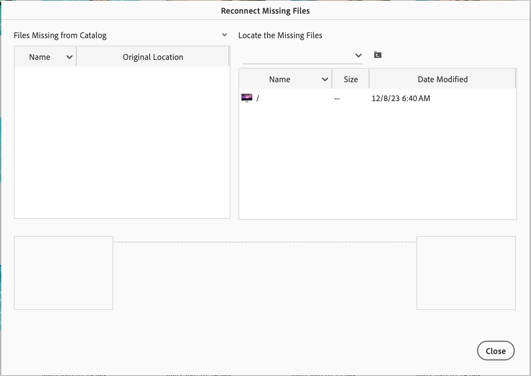 Missing file names when attemtting to "reconnect files"