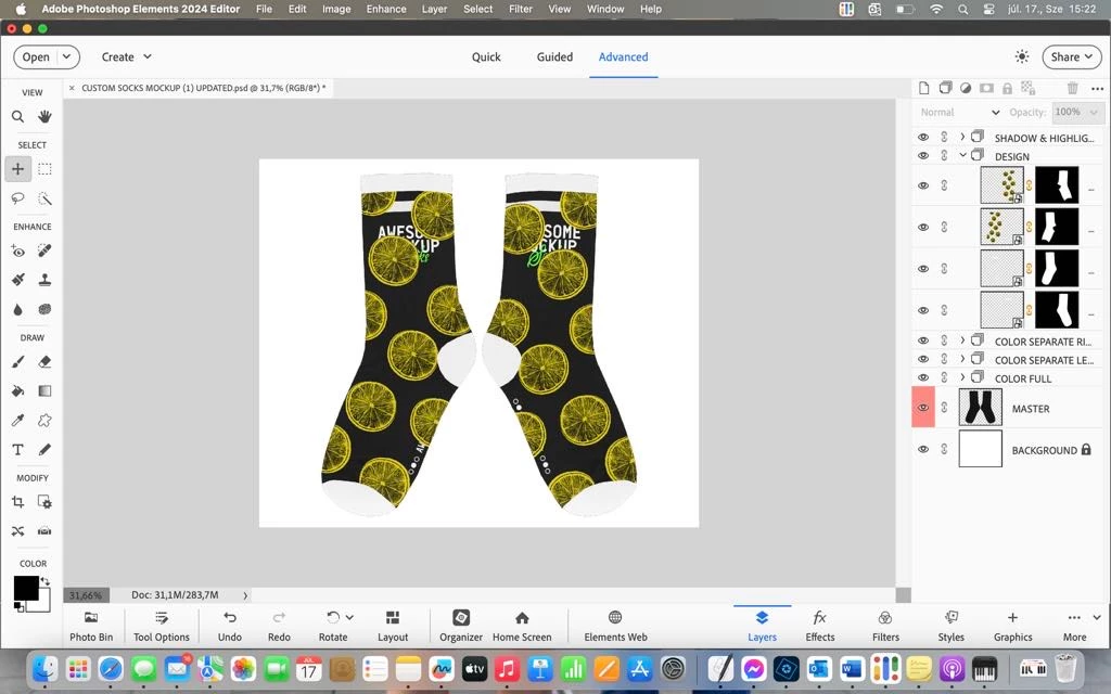 I need a programme that can handle Mockups for socks, Layers and smart objects.