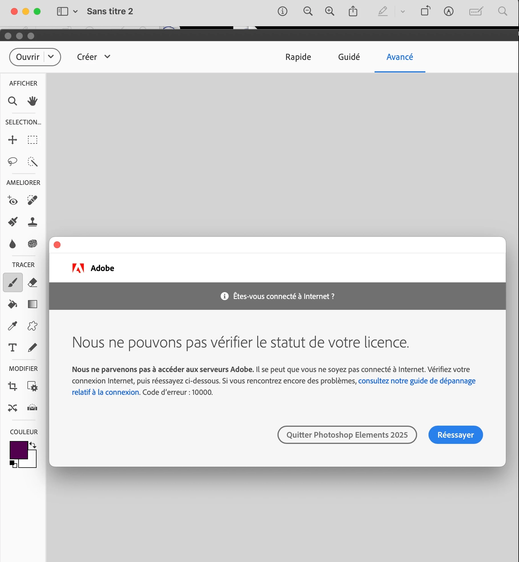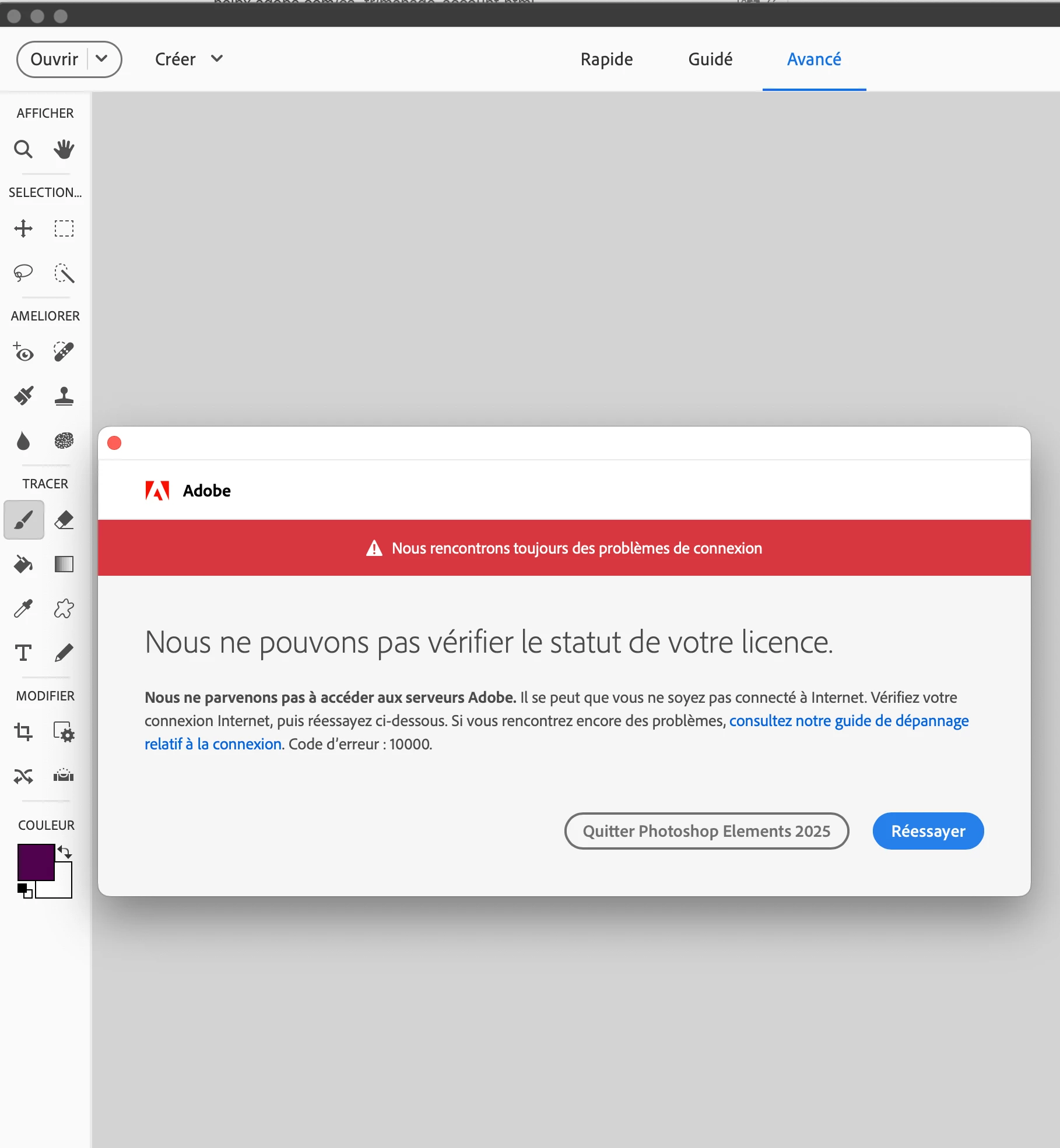 Modification de compte et incapable de charger mon application