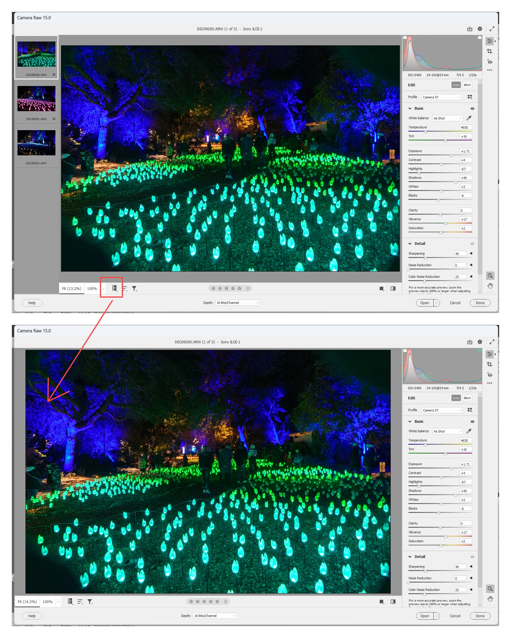 Multiple RAWs no longer line up in PSE 18's ARC?