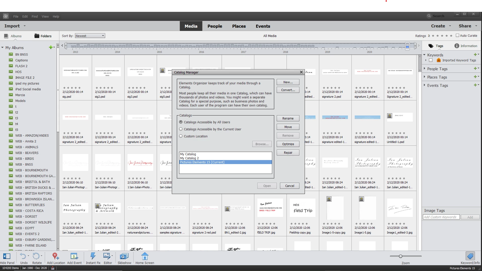 I have 112,500 pictures in Organizer, but when i uploaded 2020 it only has 104,000, many of which are old deleted pictures, and shows no photos for after Octber 2018. In other words, the upgrade has malfunctioned and Organizer is no good for me in Elements or Premiere. As I am a professional photographer (and writer), using Elements for 15 years, not good. I can only send screenshots on a new posting.
