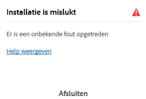 Na 10-tal keren installatie lukt niet: Installatie is mislukt. Er is een onbekende fout opgetreden