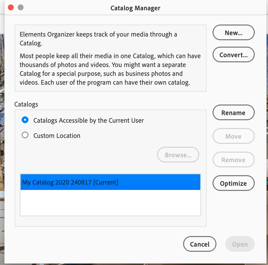 I have followed instructions given by a chat agent yesterday to back up my current 2020 catalog and then, in the 2024 version, convert to that catalog per screen shot below. While the file I converted is correctly named, the actual convert only included photos through 2019. When I looked to see what was listed that was already converted, it was an old catalog from photoshop 11. I can't spot any way to locate the current 2020 catalog so I can convert it. Hoping someone can help.