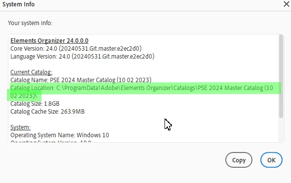 Need help to convert a catalog from my 2020 to 2024 Photoshop Elements