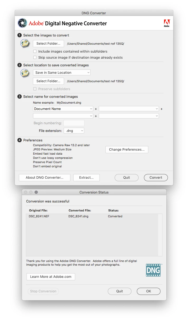 I have a problem with Adobe DNG and converting NEF files fron Nikon Z5.