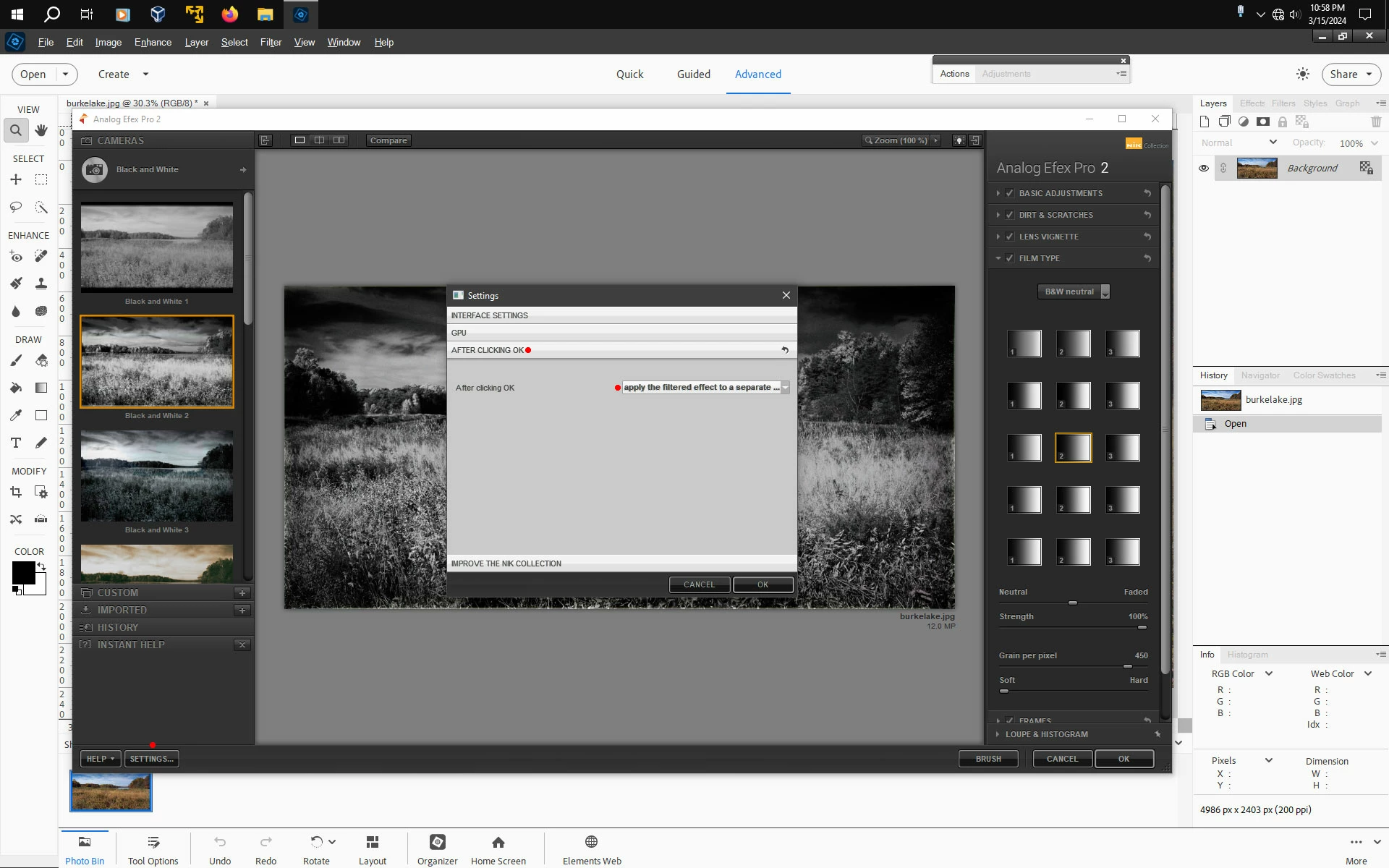 NIK collection full 1.2.11 not working in Photoshop Elements 2024.