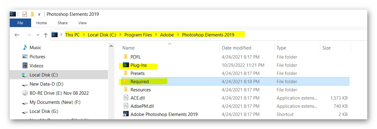 Required Plug-ins folder: C:\Program Files\Adobe\Photoshop Elements 2019\Required\Plug-Ins\