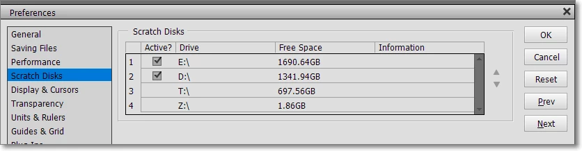 I have set two scratch disks and have exited and restarted Photoshop.