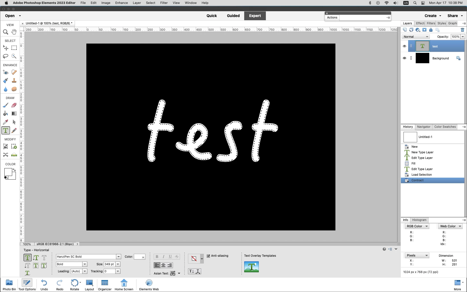 I created a text layer above a dark background. I selected the text by clicking the thumbnail but when I go to modify>contract, it says no pixels selected. I don't know why.