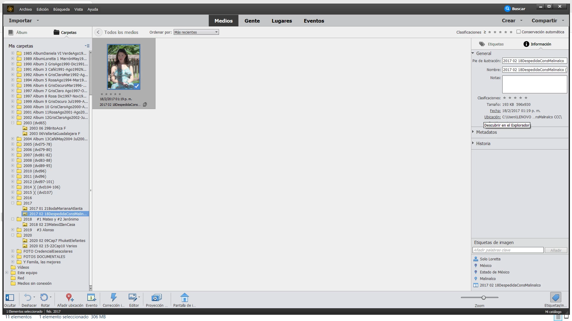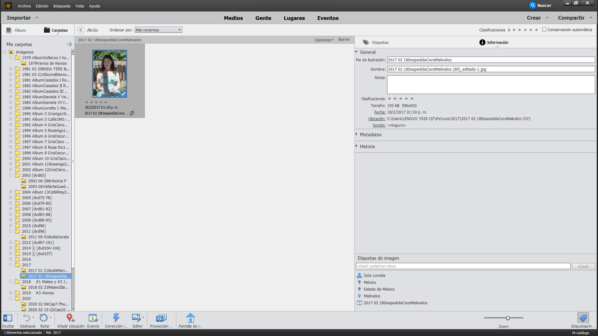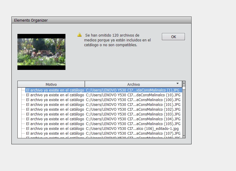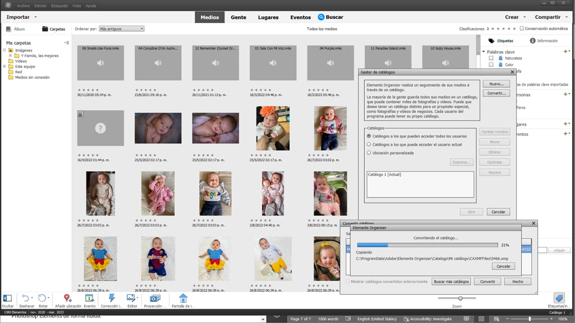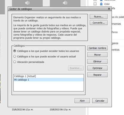 Ubicación del catálogo: C:\ProgramData\Adobe\Elements Organizer\Catalogs\Mi catálogo\