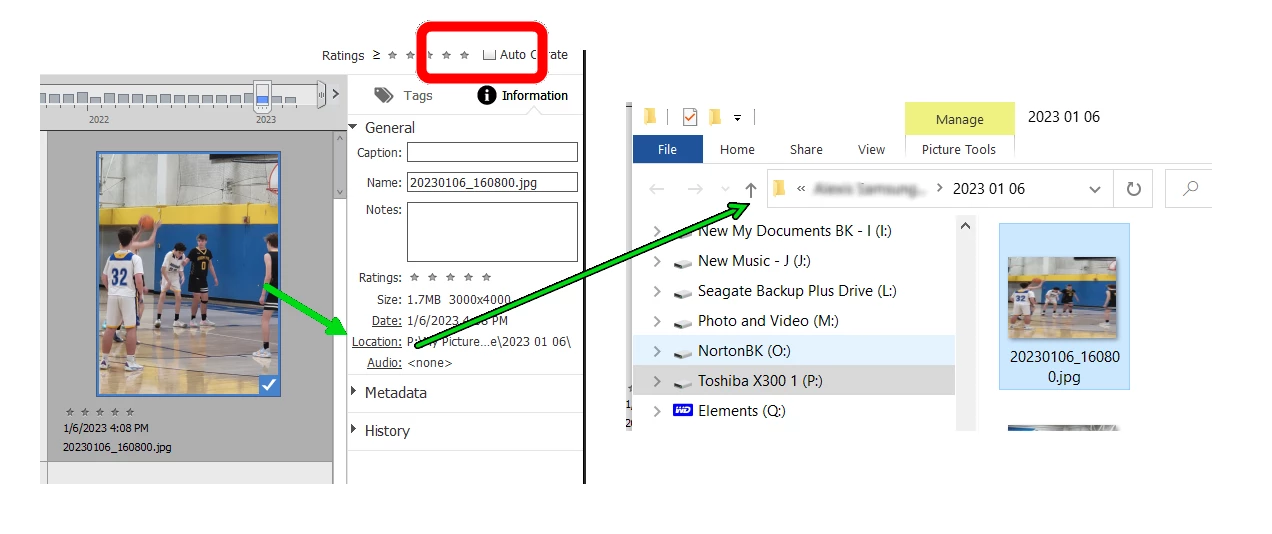 • You now want to clean up the folder/file mess so that all of the photos are found in a single set of folders on a single drive.