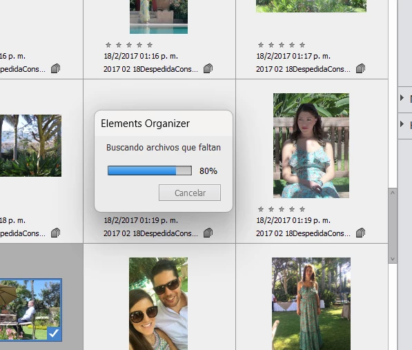 • Backup of the Elements content, has been always done only in one hard drive (ADATA No. 2, 1TB) whether setting a Complete or Incremental option.  Last time I wanted to do an Incremental Backup on this HD#2, a prompt window said “not enough space” in HD#2. So, I “accepted” and the mess began: I noticed that all files on the Panel folder tree on the left side of the Organizer window looked pale/disconnected. So, I closed and re-opened the Organizer. The "import pictures" window showed up and started to scan and scan and scan for such a long time, that I decided to cancel the scanning. I think that was a mistake because reconnecting more than 44,000 picks needed much, much time.