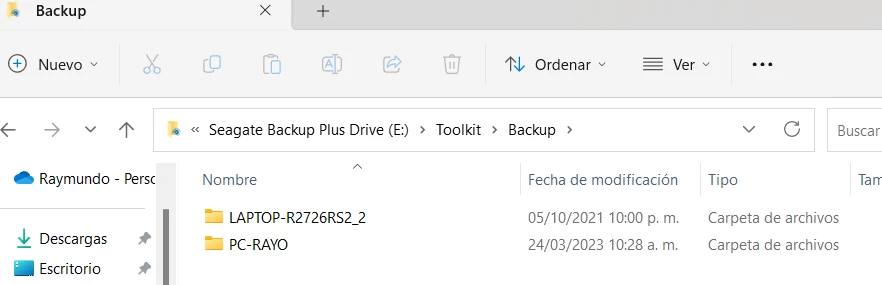 1. Se hizo otra copia de seguridad del mismo catalogo en otro disco externo de 2 TB.