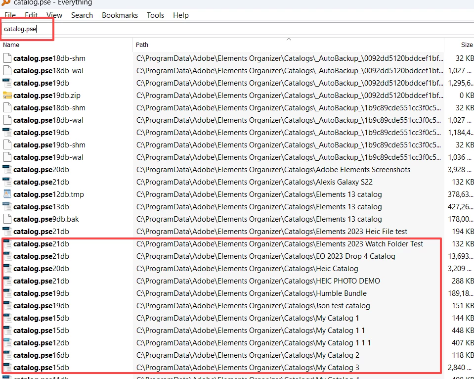 Mi Catálogo en Adobe Photoshop Elemens Organizer (APEO) 2019, NO aparece en el archivo Adobe: C:\ProgramData\Adobe\Elements Organizer\Catalogs\Mi catálogo\, por lo tanto, no puedo usarlo para migrar la estructura de la organización del cátalogo a la nueva versión Adobe Photoshop Elements Organizer 2023.