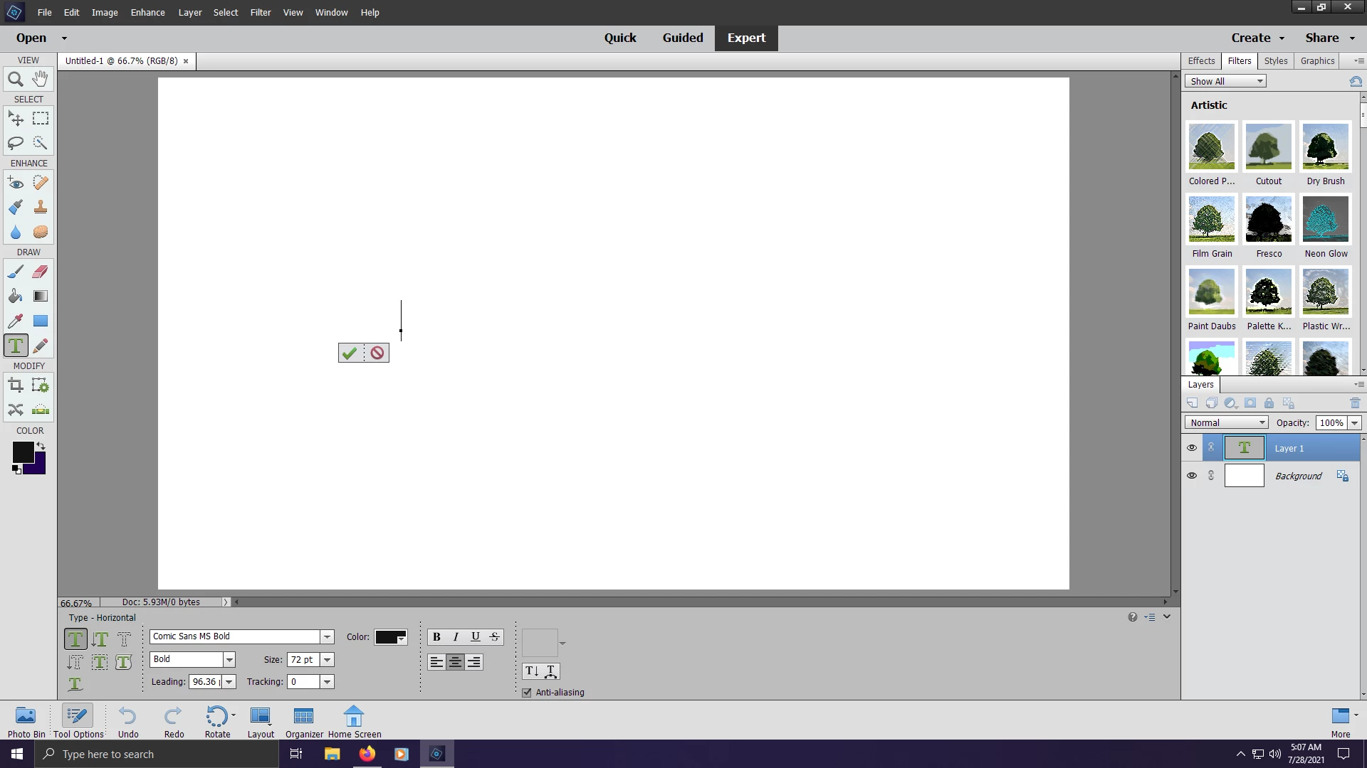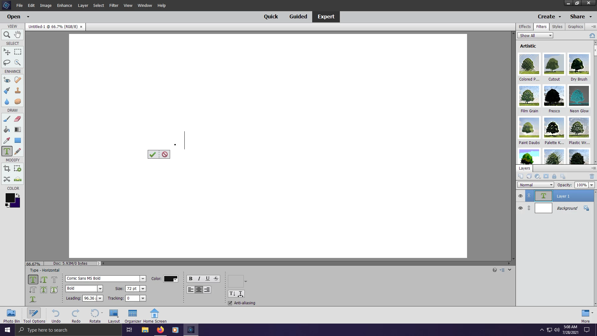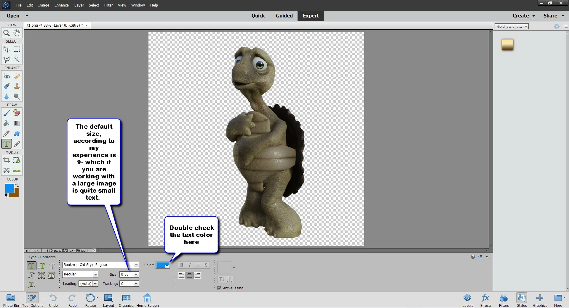 Why can't I see my text when I type in Adobe Photoshop Elements 2021?