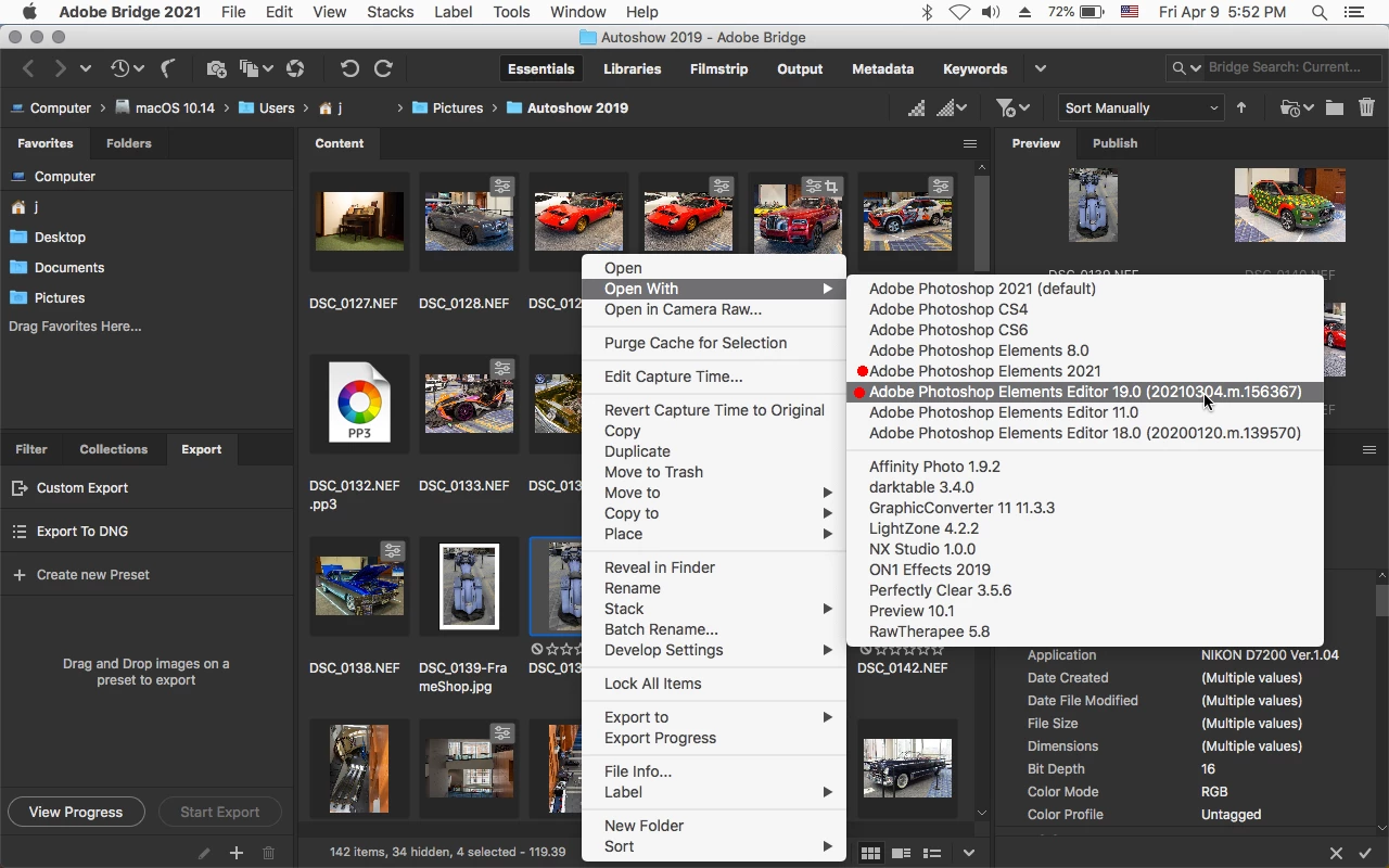 In Bridge if you select Open With>Adobe Photoshop Elements Editor 19.0 instead of Photoshop Elements 2021, does that work?