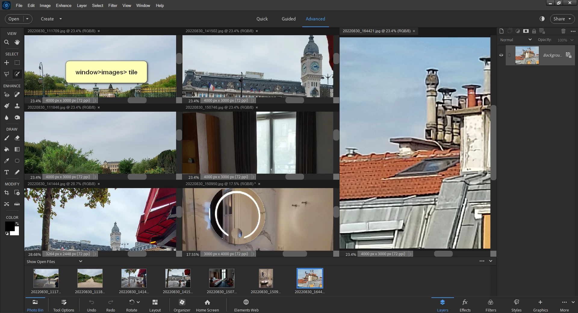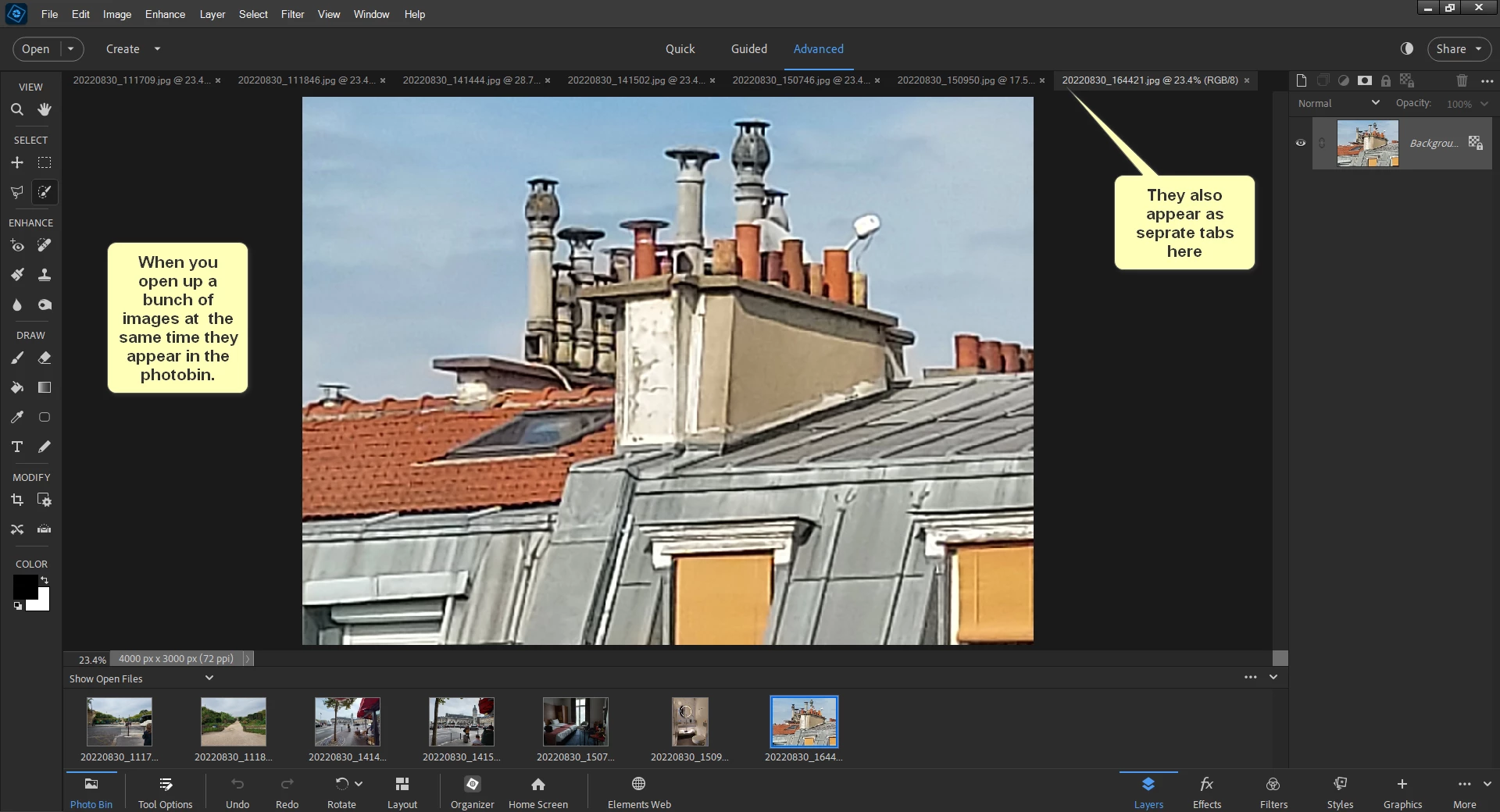 How do you open, view and edit multiple images in PSE 2024 in the same workspace? In PSE 11 we could open multiple PDFs and blank files and view in the same workspace.
