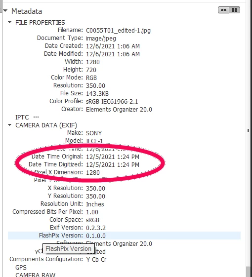 If I add tags to one photo in organizer and then select it an choose File->Save Metadata to File, the file is saved, the keywords are added and a modify time stamp updates in the metadata. BUT, if I tag multiple files and then choose "File->Save Metadata to Files" the time on the DateTimeOriginal field also changes (but not the date). It's not my current time either. So if the photo has datetimeoriginal of "2022:04:18 14:11:24.160-05:00" and I set some keywords and write metadata to that one file datetimeoriginal does not change, but if I do multiple files at once I see it change to "2022:04:18 22:03:58-05:00".