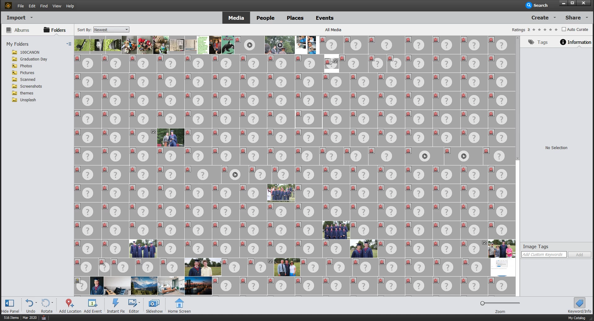 I just purchased Elements. Why does the organizer look like this? It was 'scanning for media' for hours until I stopped it.
