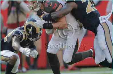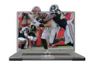 I followed the steps (used rectangular marquee to select white area inside laptop screen & added layer mask to players photo) and got pretty much the result the author was going for. After creating a mask with the laptop screen, the layer shows the football players with their heads and helmets chopped off: