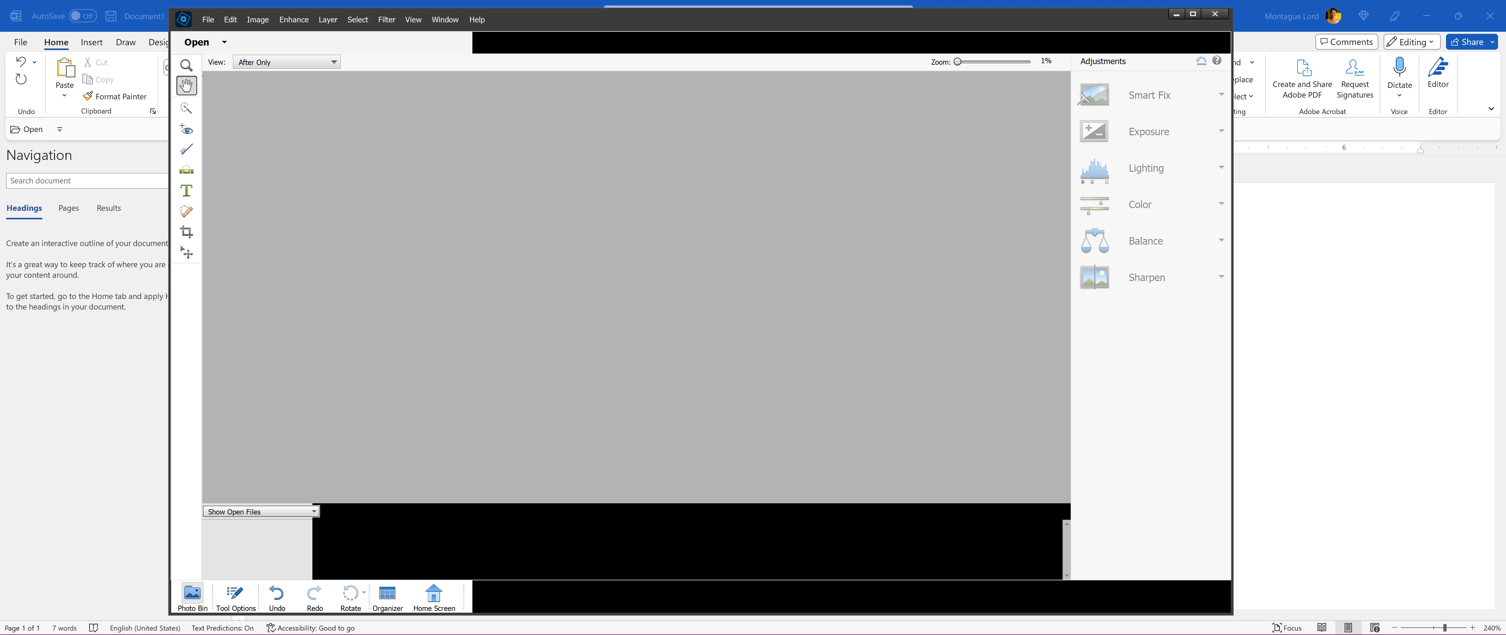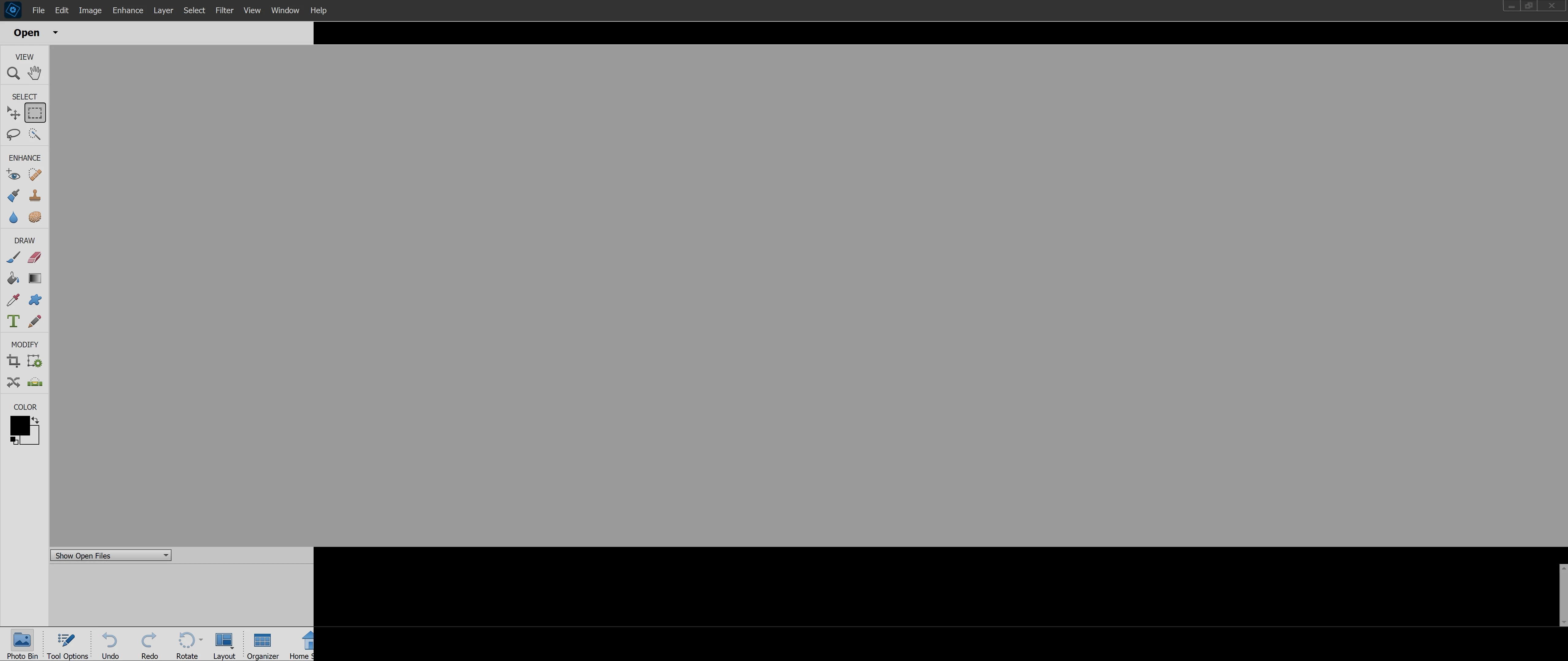 As shown in the attached file, part of the upper panel showing basic, guided and expert views, and also part of the lower panel are blacked out. So I have to move my cursor around and guess where the basic or expert views are located, and when I open one of the tools, much of it doesn't show, nor do all the photos that I have opened because they are in the blacked-out area.