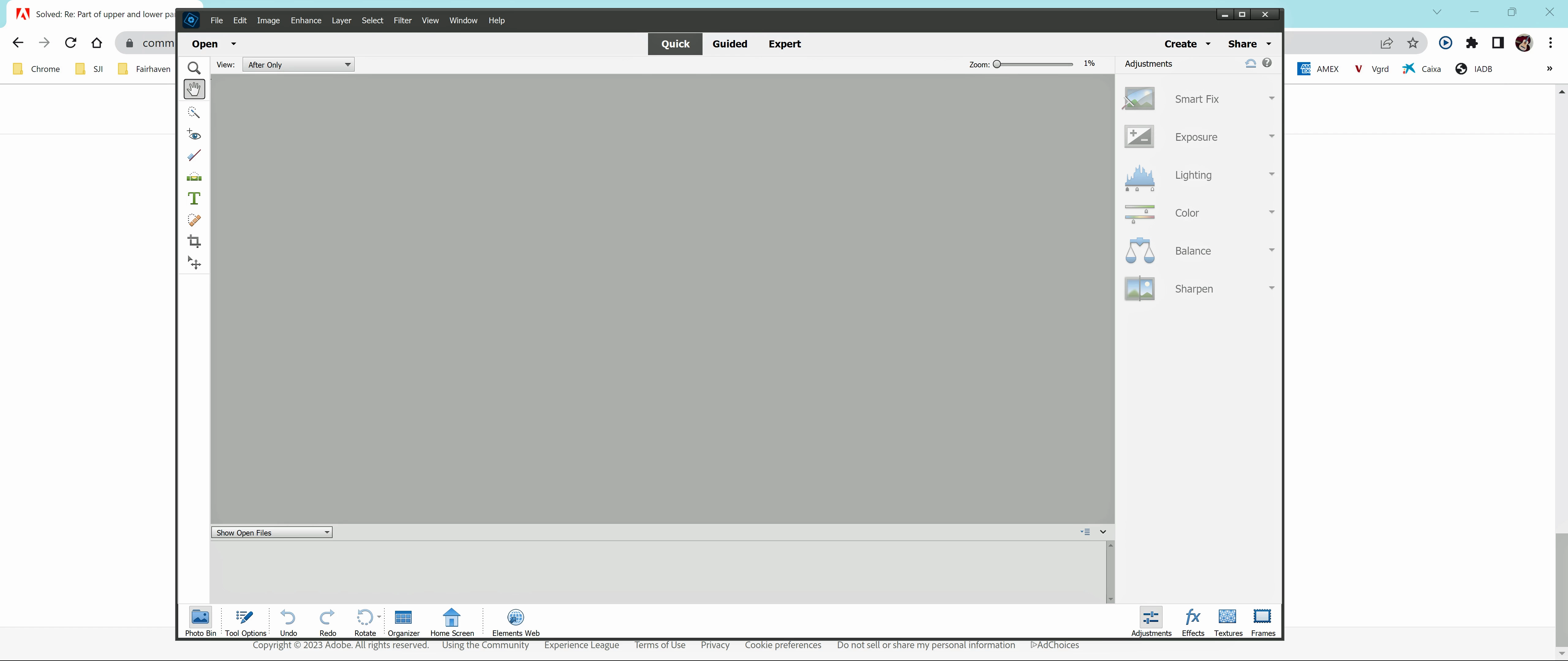 I'm using Windows 11 (but the same problem occurred with Windows 10) and have Photoshop Elements Version 21.0 installed.