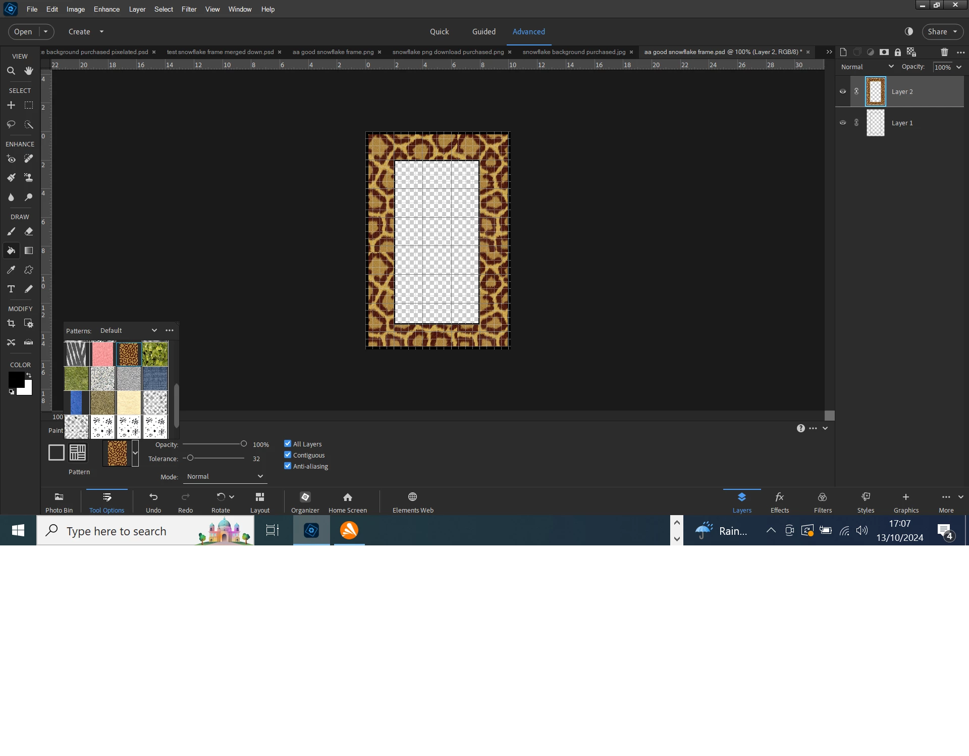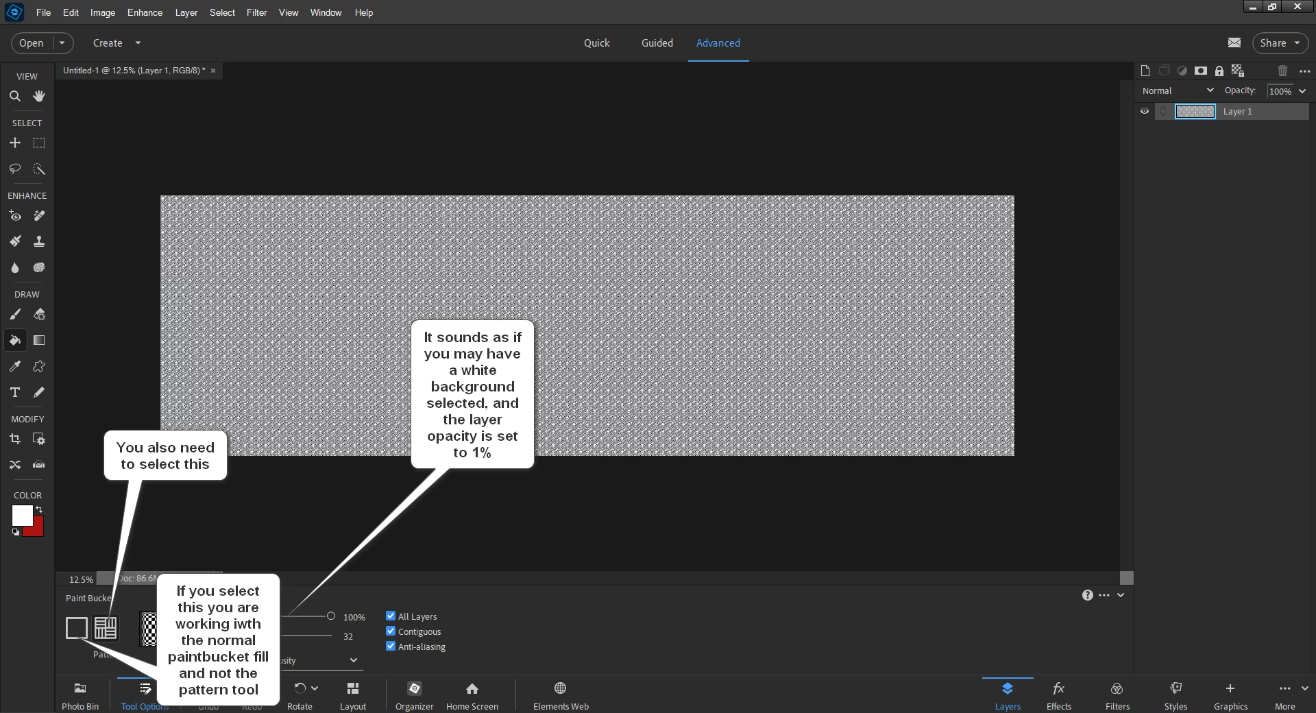 I have loaded it into Photoshop Elements and defined the pattern. When selecting the pattern in pattern fill it fills with white?