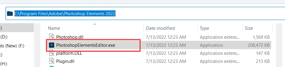 The correct path for the Editor's exe file is C:\Program Files\Adobe\Photoshop Elements 2022.  And make sure you choose the file named PhotoshopElementsEditor.exe.