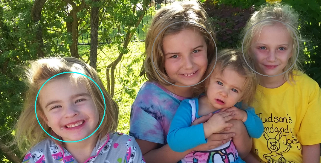 I have a group of 4 people I want to adjust the smile on one of them. But when I go into Enhance Facial Features adjustment only the other 3 have been selected by putting circles around them. How can I select the 4th. She isn't that bad, she looks like a person. Just not a smiling person.