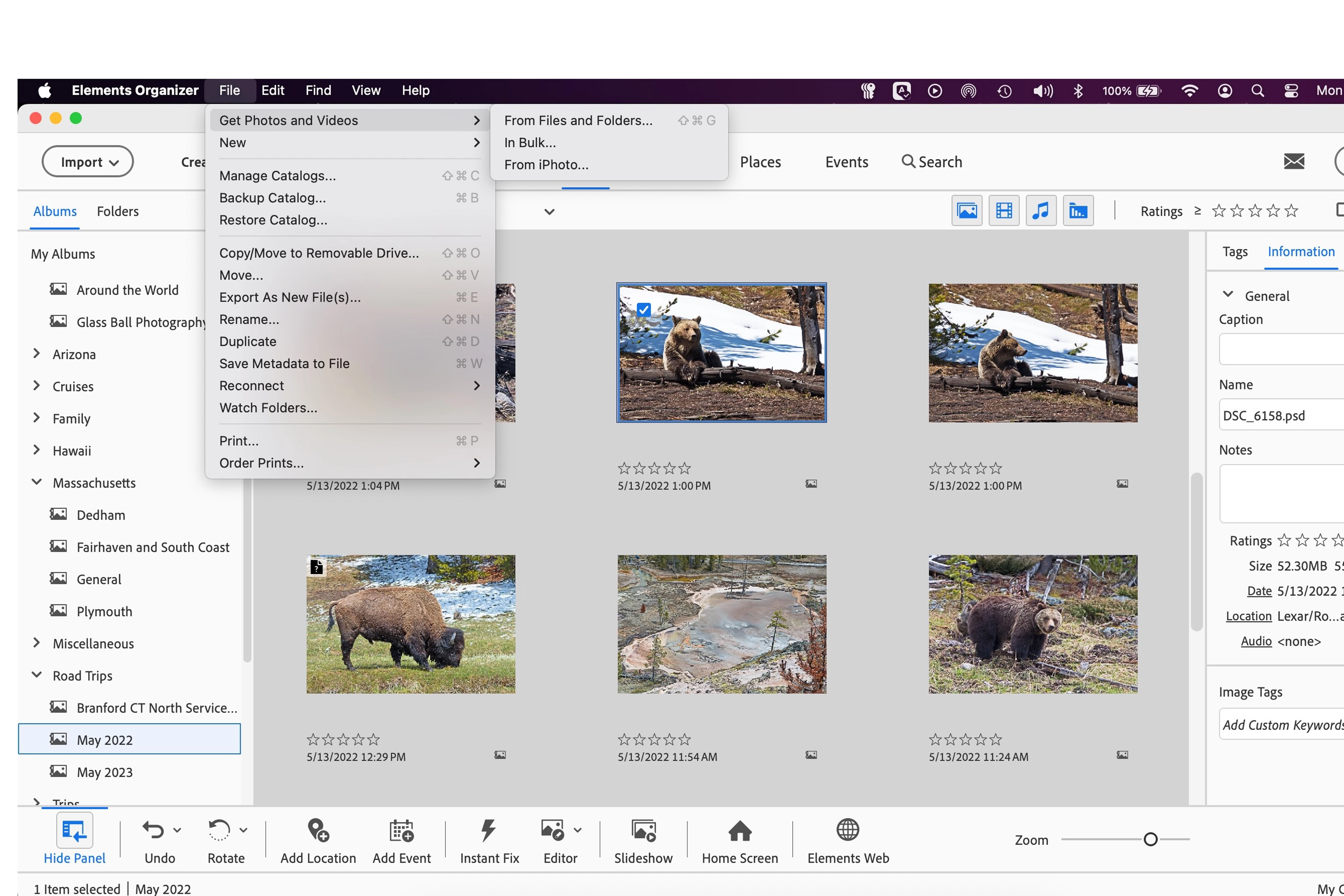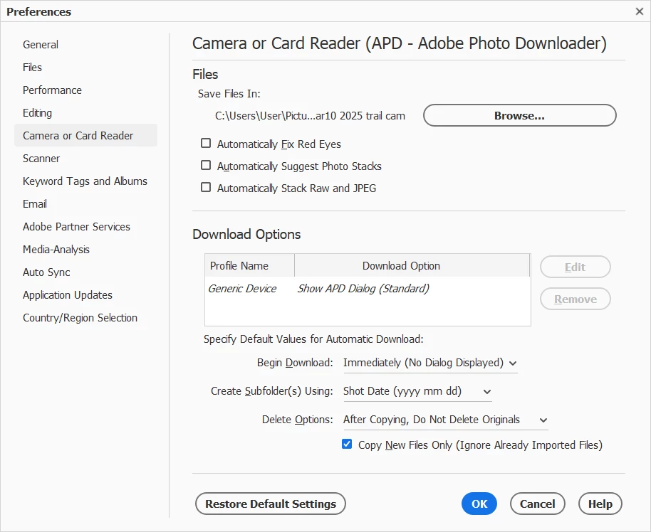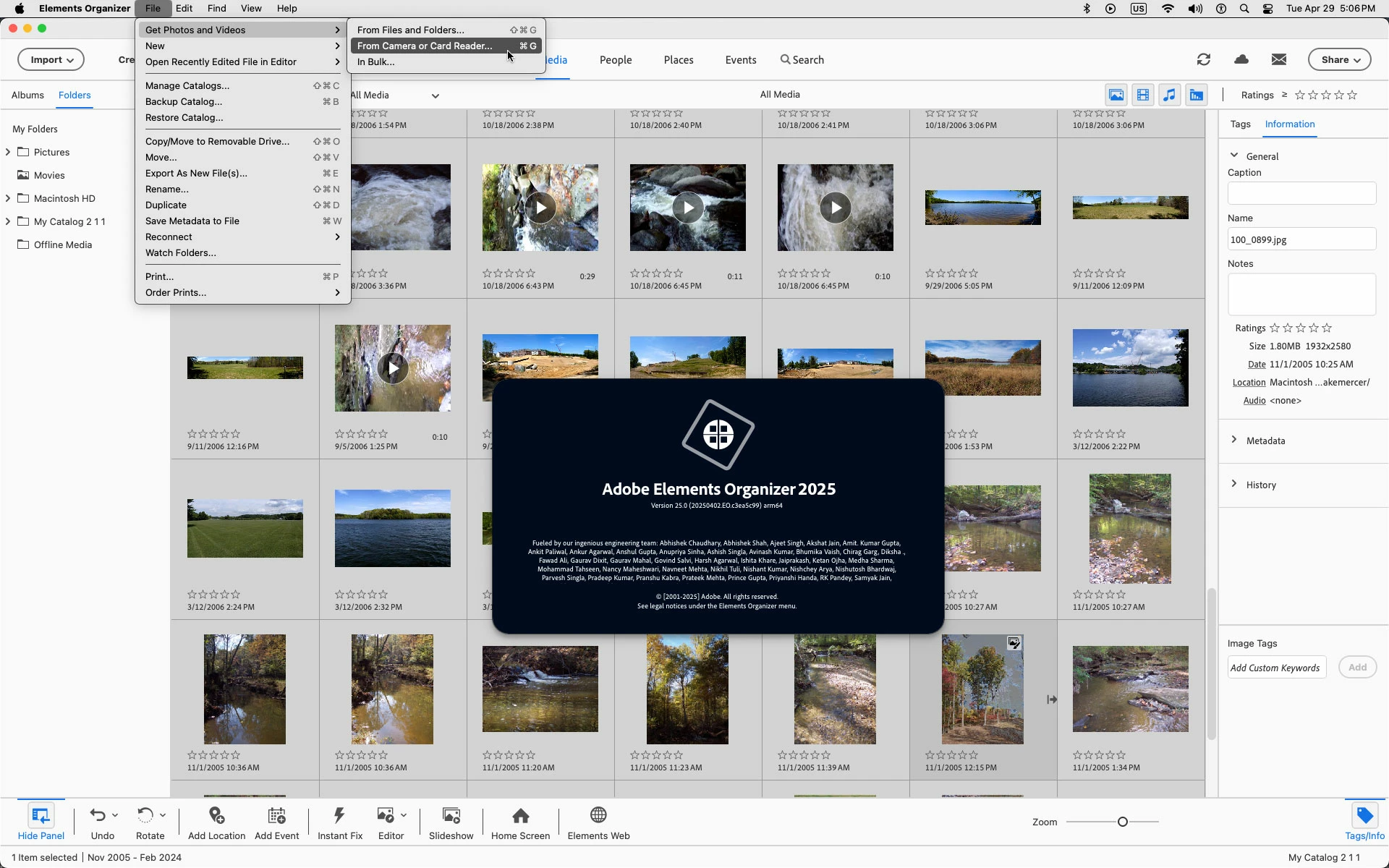 I just installed Elements 25 on my MacbookPro (V. 15.4.1). When I go to download photos, it only offers the options 'from files and folders', 'in bulk' and 'from iphoto'. It doesn't offer 'from camera or card reader'. Is this normal?