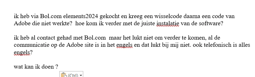 ik heb via Bol.com elements2024 gekocht en kreeg een wisselcode daarna een code van Adobe die niet werkte? hoe kom ik verder met de juiste instalatie van de software?