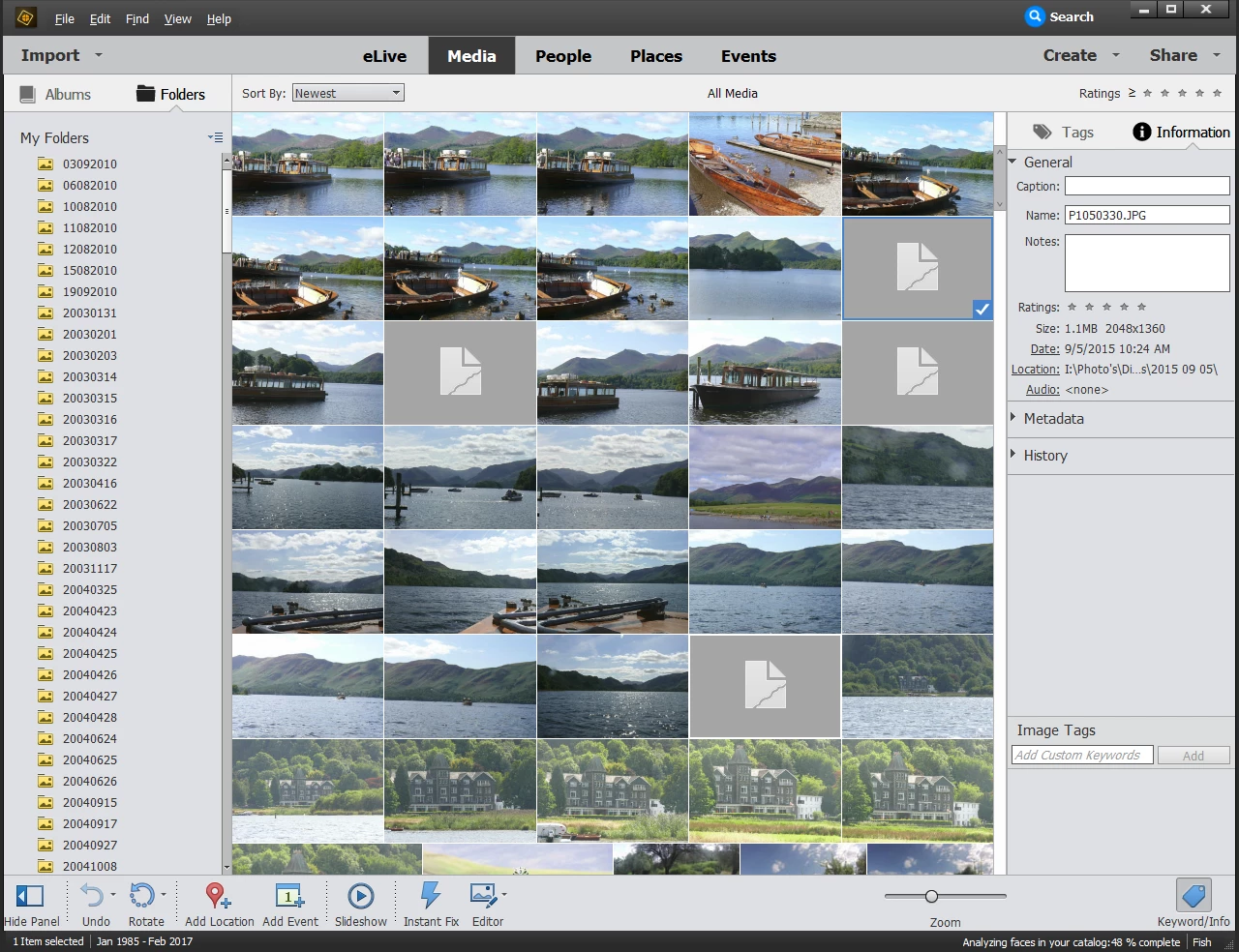 Just imported photo's in to elements 15, now in 8 all was fine. In 15 However many will not display. See Below. However go through explorer and I can see the photo's fine.