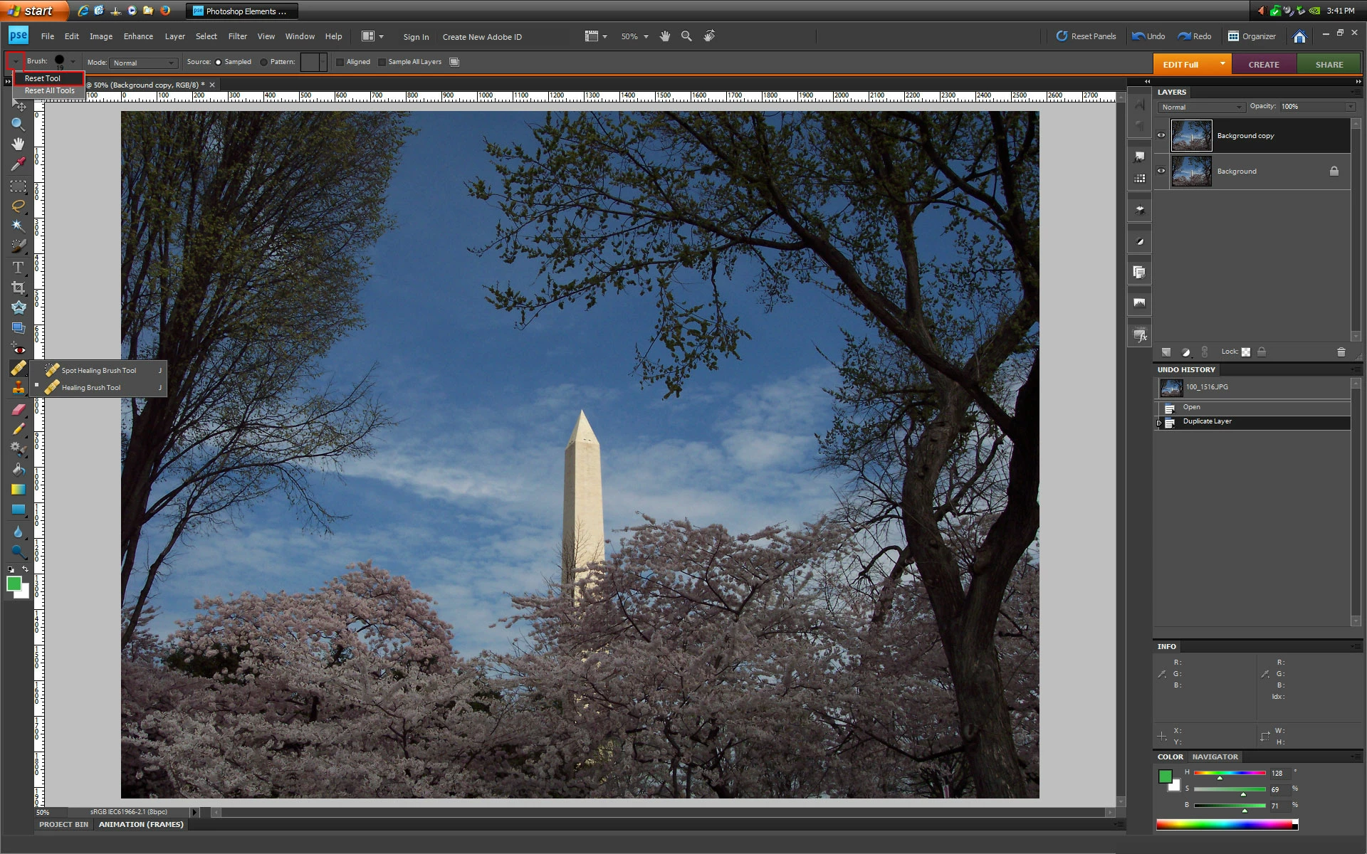 Yesterday I opened Elements 8 and everything worked fine until I clicked on the healing brush