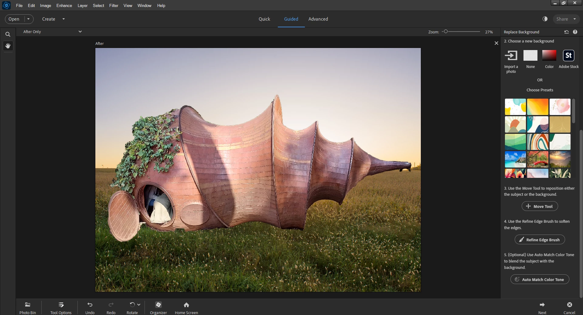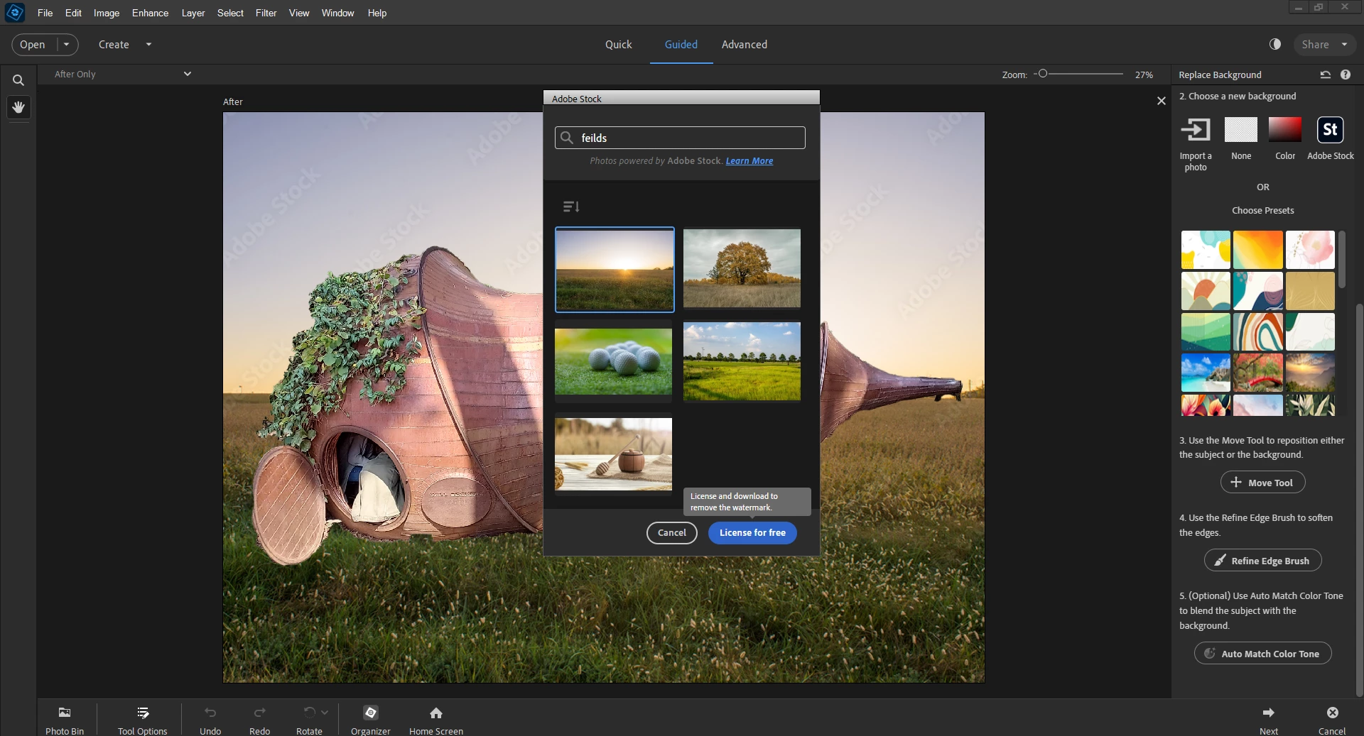 When I use the Change Background feature in Elements 2024...and you find a photo on REPLACE BACKGROUND...from the Adobe Photostock button (suppose to be free in Element 2024) the backgrond pops in..but it won't save for you to use it..and you have to cancel and the backround goes away. I've tried everything.What am I doing wrong? HELP