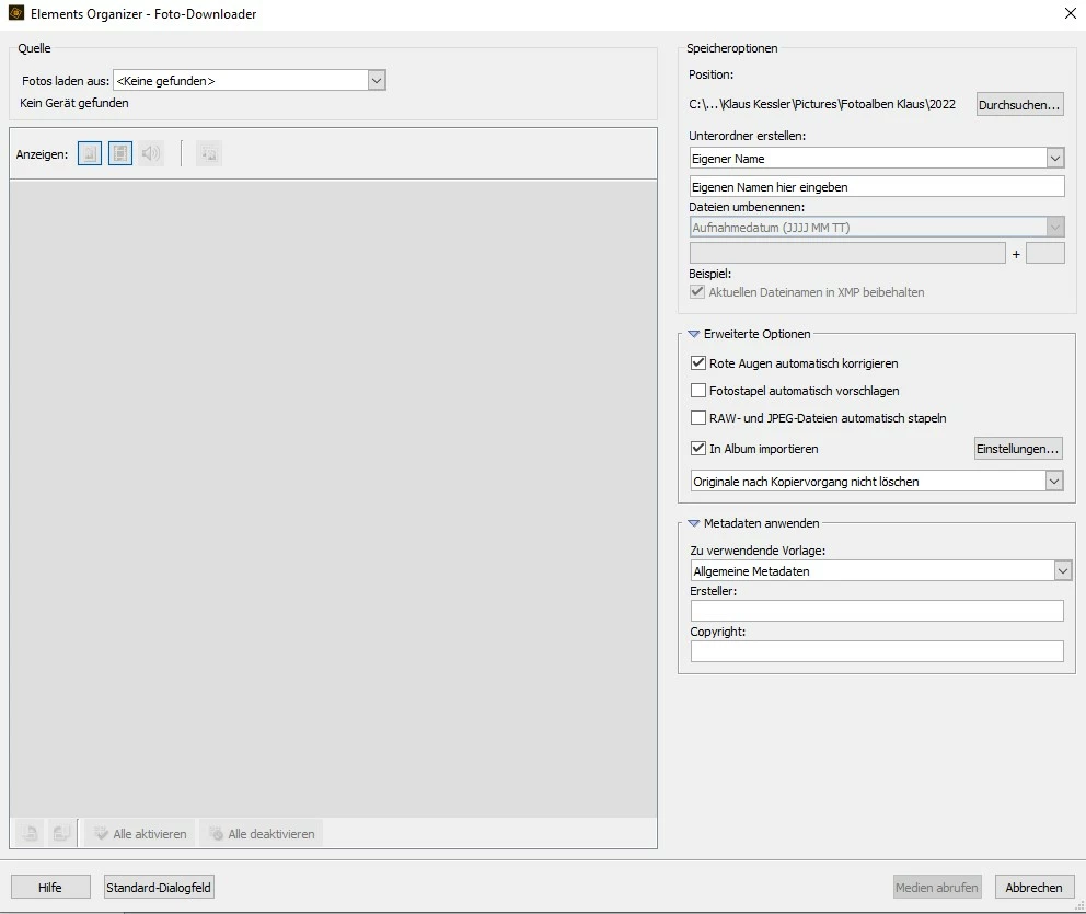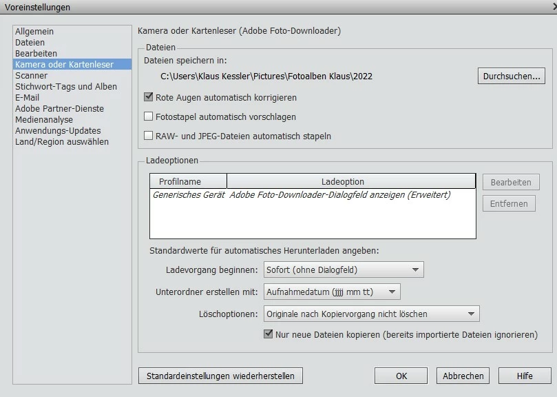 „Erstellt Kopien der Dateien, die von einem externen Laufwerk importiert werden“ in den Einstellungen nicht finden.