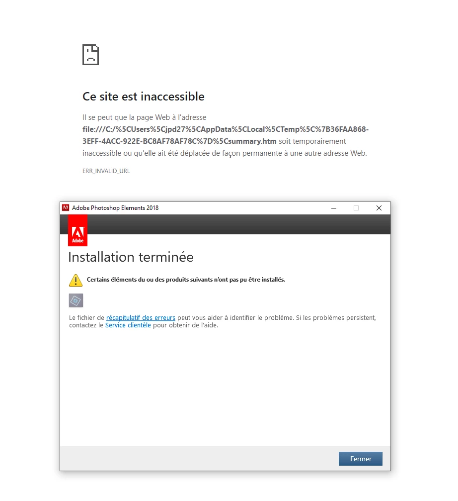 I tried to uninstall and reinstall but at the end of the process i've got the attached message, when i try to open the link, i've got an error msg.