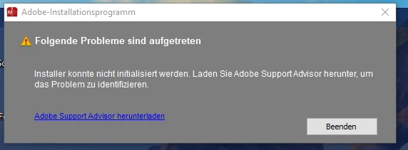 Ein anschließender Download des Photoshops Elem.14 und eine Neu-Installatiosversuch führte zur gleichen Fehlermeldung.