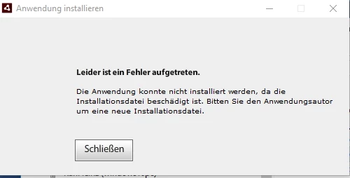 Leider läst es sich nicht neu installieren und generierte folgende Fehlermeldung: