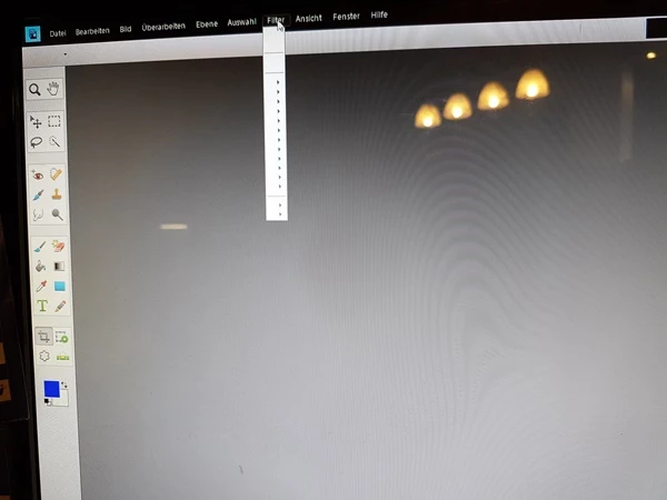 Im Photoshop sehe ich gar nichts. Filter,Bearbeiten,Bild,Ansicht,Fenster... und was da drunter ist u aufgehen müsste -da hab ich nur die Pfeile und nix dahinter.