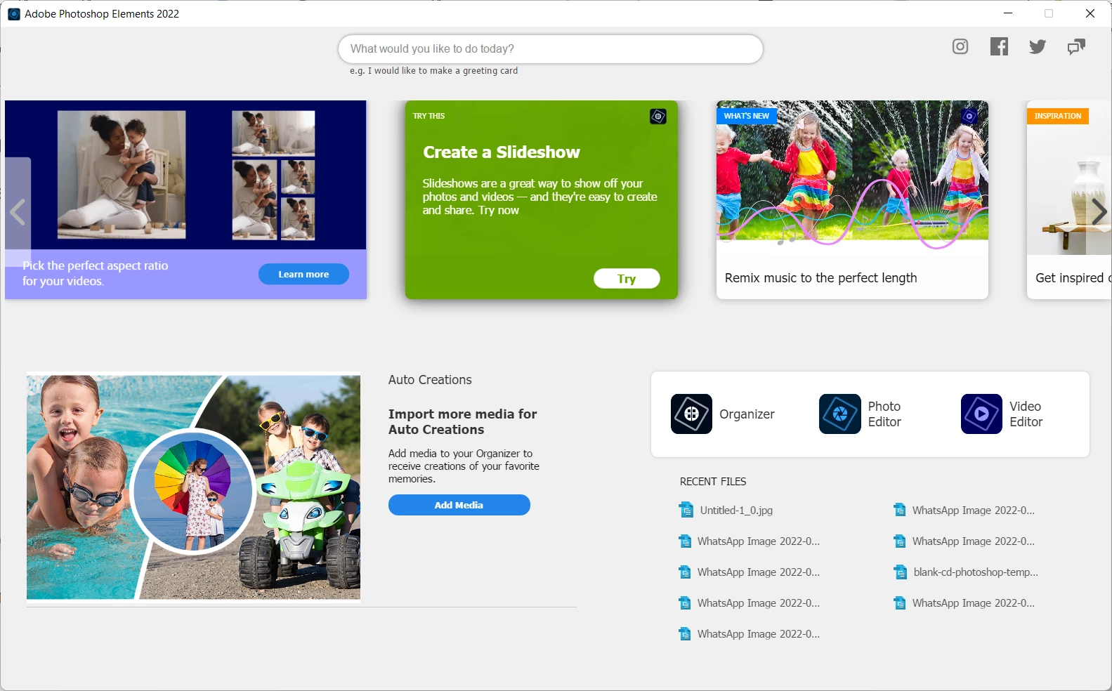 I have both Photoshop Elements and Premier elements installed. If i choose Photosop Elements icon it brings up the box to choose either Photo or Video