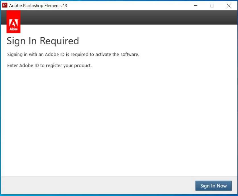 I installede Photoshop Elements 13 to new computer. Installation went well, but now when I try to launch the program it keeps asking me to sign in. It tells that Sign in Required, but I have signed in many times and still cant get in the Photo Editor.