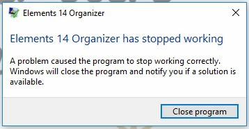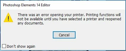Photoshop Elements 14. There was an error opening your printer....