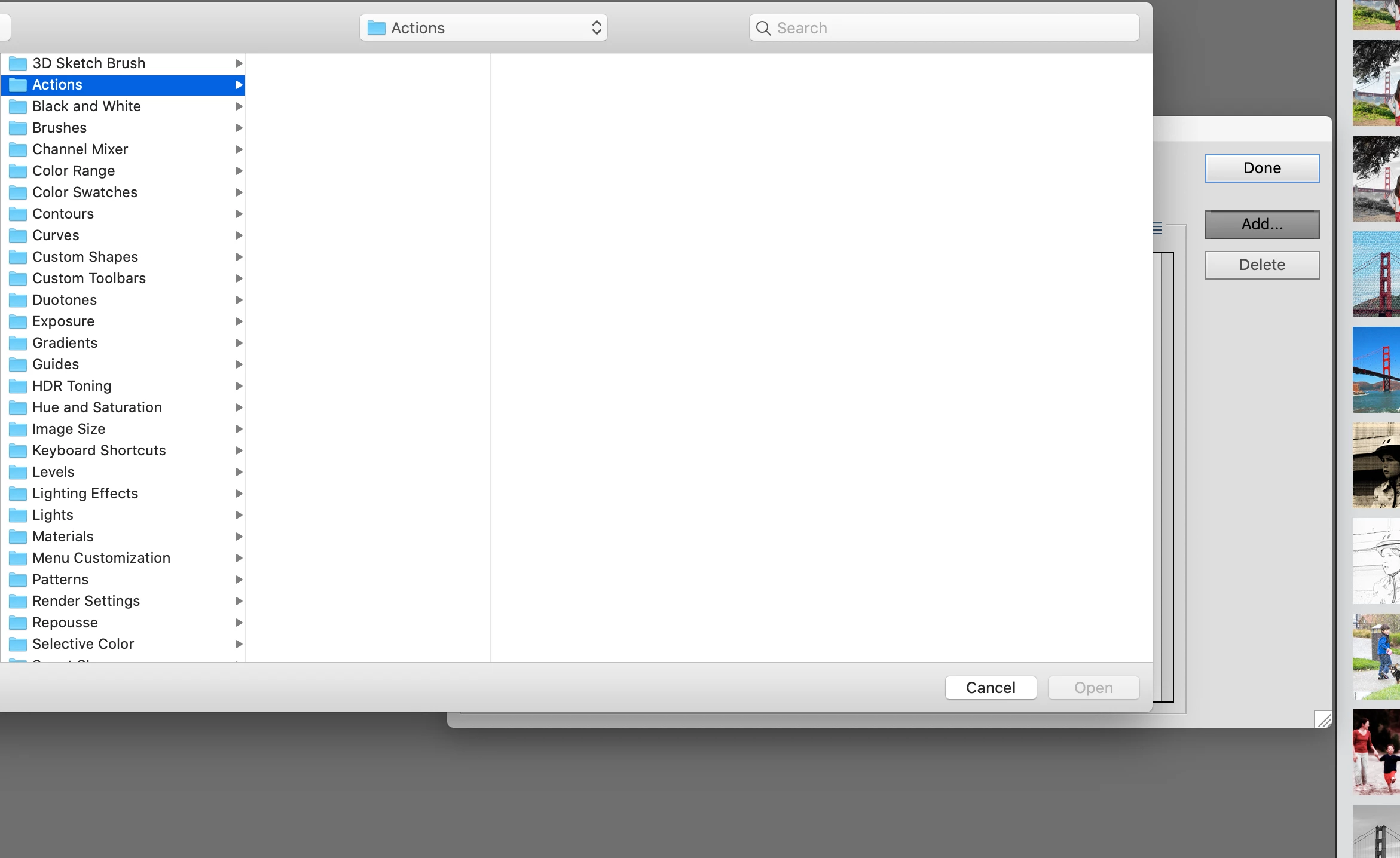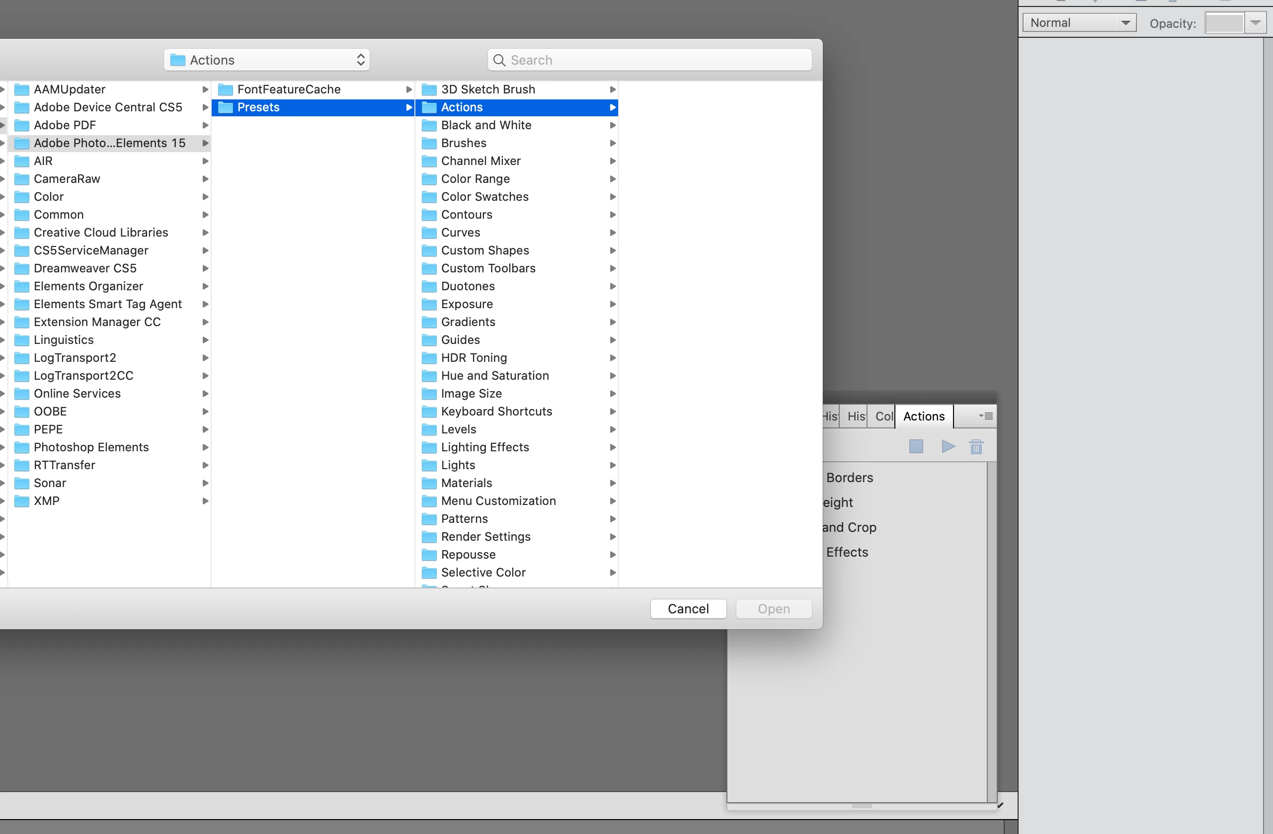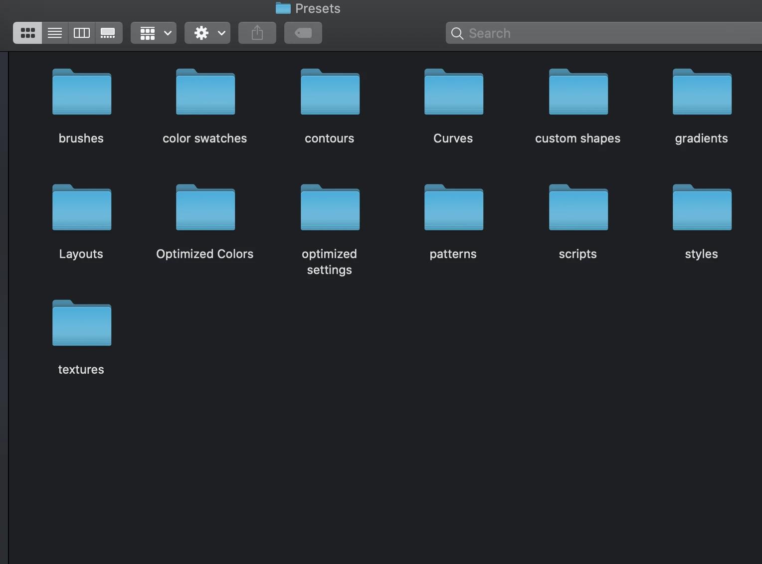 I've gone into the finder files (see below) where the default preset folders are stored and I can see some folders are missing. For example the 'Actions ' folder isn't being displayed. However, when in the preset manager within photoshop it displays a file called 'Actions' (see below). Can anyone advise on this please and point me in the right direction?