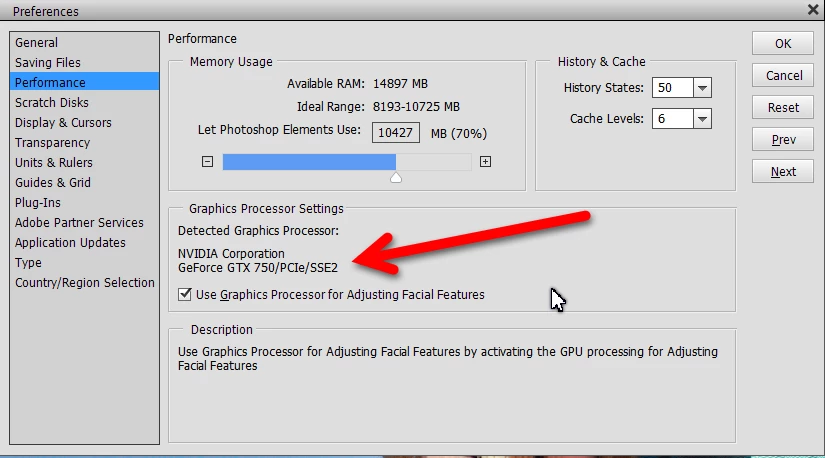 Photoshop Elements (17.0) not detecting correct GPU