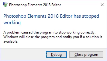 Photoshop Elements 2018 crashes after update