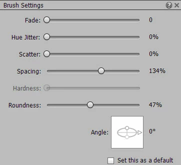 Click the brush settings button and adjust spacing and roundness until you see a dashed preview