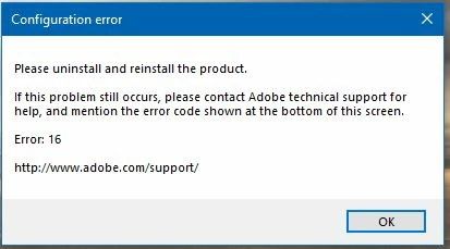 Photoshop Elements 2019 "Configuration Error" Error: 16