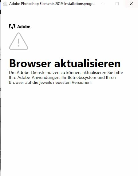 am WE habe ich versucht Photoshop Elelements 2019 (Ver. 17) unter Windows 10 neu u installieren. Bin direkt am Anfang der Installationsroutine gescheitert bei folgender Fehlermeldung "Browser aktualisieren". Beim recherschieren habe ich herausgefunden das wohl zwingend der Microsoft Explorer 11 nötig ist, dieser wurde aber vor Jahren eingestellt und nicht mehr unterstützt, mit "Edge" hat auch nicht funktioniert.