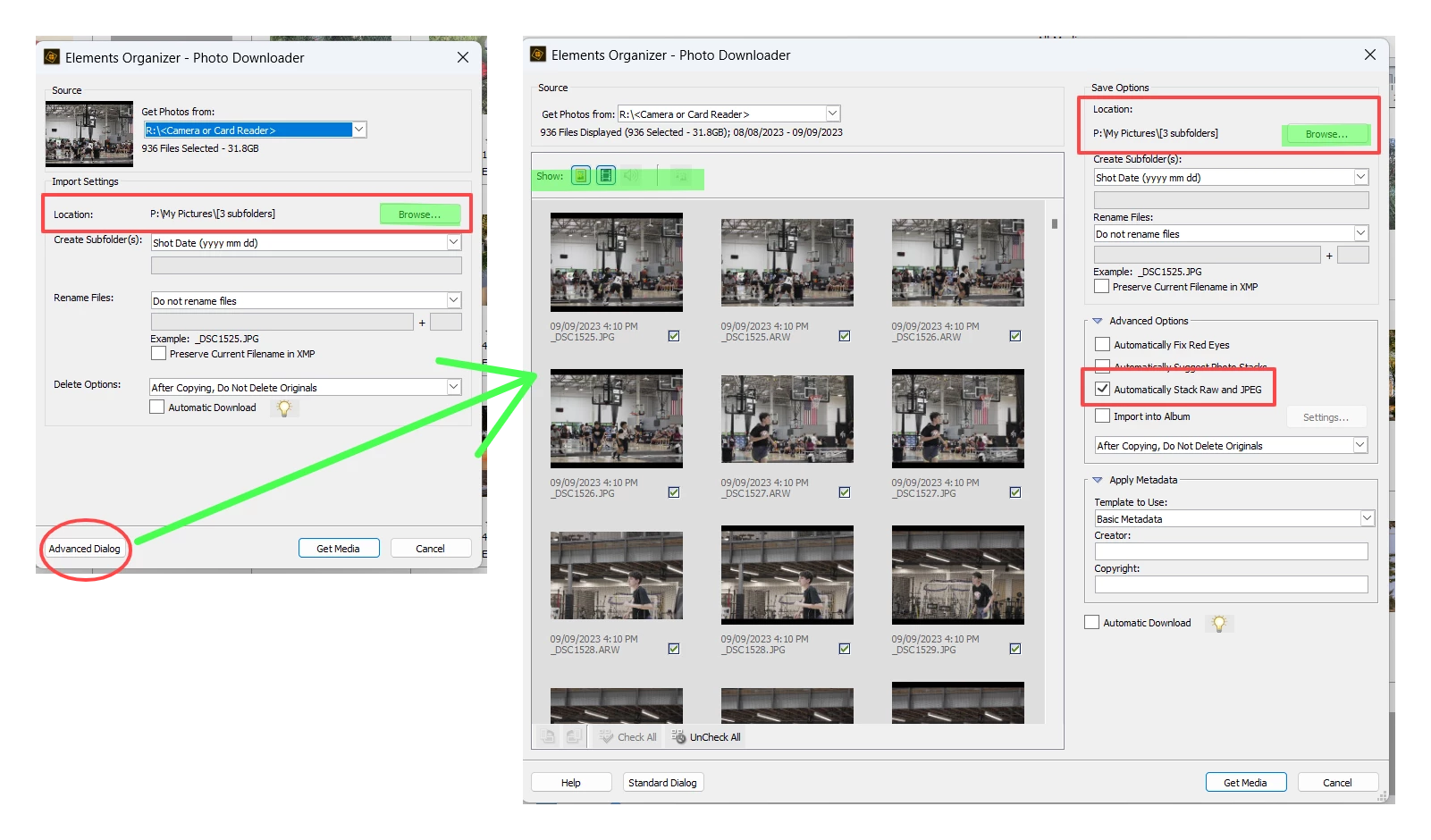 Photoshop elements 2020 using an external drive to import photos from card reader to organizer